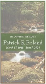 Patrick Joseph Boland, 76, passed away on February 5, 2024. He was born on January 22, 1948 to Arthur and Helen Boland in Gary, Indiana. Patrick was a beloved husband, father, grandfather and friend....