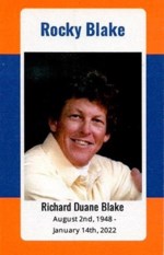 Richard “Rocky” Duane Blake born 8/2/48 in Ames, IA. to Duane and Margaret (Tate) Blake died 1/14/22 in Denver, CO. Married (divorced) Lucy Phillips 6/30/73. Survived by his children Ryan (Kaisa) Bla...
