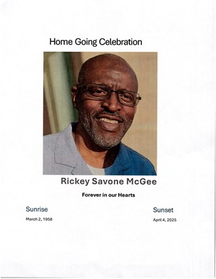 Rickey Savone McGee, age 67, of Fort Worth, Texas passed away on Friday, April 4, 2025. Rickey McGee was born on March 2nd, 1958, in Fort Worth, Texas to Rose Mary and WC McGee. During his formative...