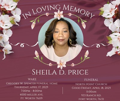 Ms. Sheila Devore Price Walton, age 62, of Fort Worth, Texas passed away on Wednesday, April 9, 2025. A visitation for Sheila will be held Thursday, April 17, 2025 from 12:00 PM to 4:00 PM at Gregor...