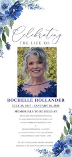 Rochelle (Shelley) Hollander (née Carroll), age 78, of Naples, Florida (formerly Stony Brook, NY), passed away January 18, 2026, after a brief illness. Rochelle loved her family fiercely and was so d...