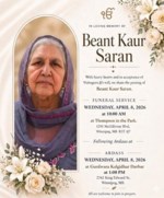 In Loving Memory of Beant Kaur Saran With heavy hearts and in acceptance of Waheguru Ji's will, we share the passing of Beant Kaur Saran ~FUNERAL SERVICE~ WEDNESDAY, APRIL 8, 2026 at 10:00 AM at Th...